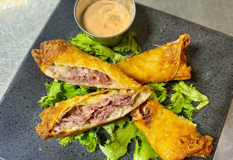 We are always cooking up something delicious! Come out and try our Rueben Egg Rolls-Tender Corned Beef, Swiss Cheese, Tangy Sauerkraut, Side 1000 Island.